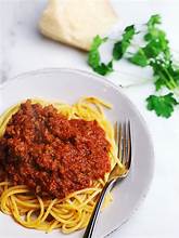 ….another wonderful meat sauce. I did not use the pork neck bones or the tomato paste and added 2 stalks of diced celery and 2 shredded carrots. Also, I only used about 1/4 cup of white wine. This is just my take on the recipe. You needn’t follow it.