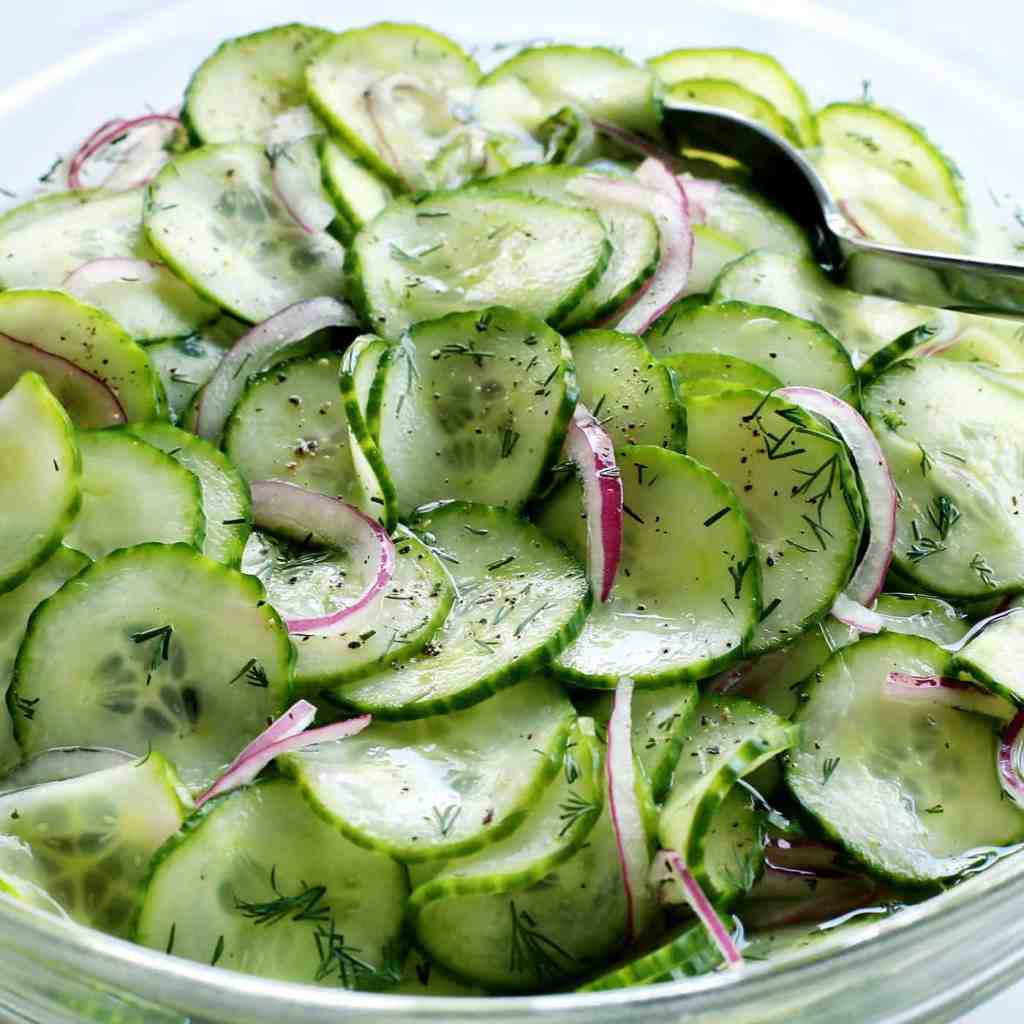 - In a medium bowl, stir together the vinegar and honey until the honey is dissolved. Shake the cucumbers in the colander to get rid of any moisture, pour onto paper towels and pat dry, then transfer the cucumbers, red onion and dill to the bowl. Stir to combine, then season to taste with salt and pepper.
