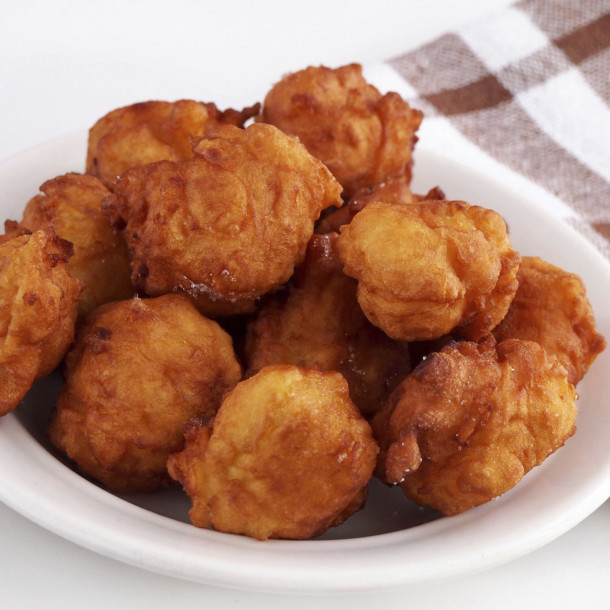 Directions: Fill a heavy skillet or deep fryer with 3 inches of oil and heat to 360* F. (If you don’t have a thermometer, oil is ready when a single, test chickpea sizzles in the oil.) Combine the flour with enough water to form a rather thick batter. Add salt and stir in the chickpeas and minced onions. Drop into the hot oil by the spoonful, and deep fry until golden and crisp. Drain on paper towels.